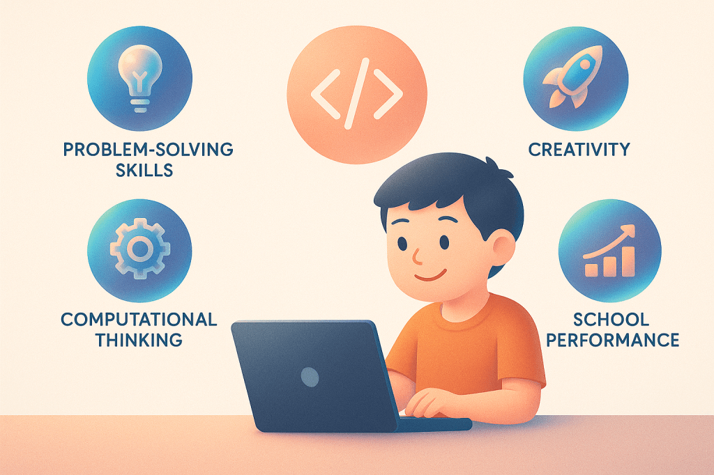 Coding has many advantages for children. Coding by analyzing a task into smaller bits creates logical thinking in children whose main component is analysis. Creativity is another benefit of coding for kids that can be fostered through fun coding games and activities. Also, coding teaches children that they can focus on one issue and try to find a solution to it, and if their solution does not work, they can quickly change it and find another solution, which will improve their problem-solving skills.